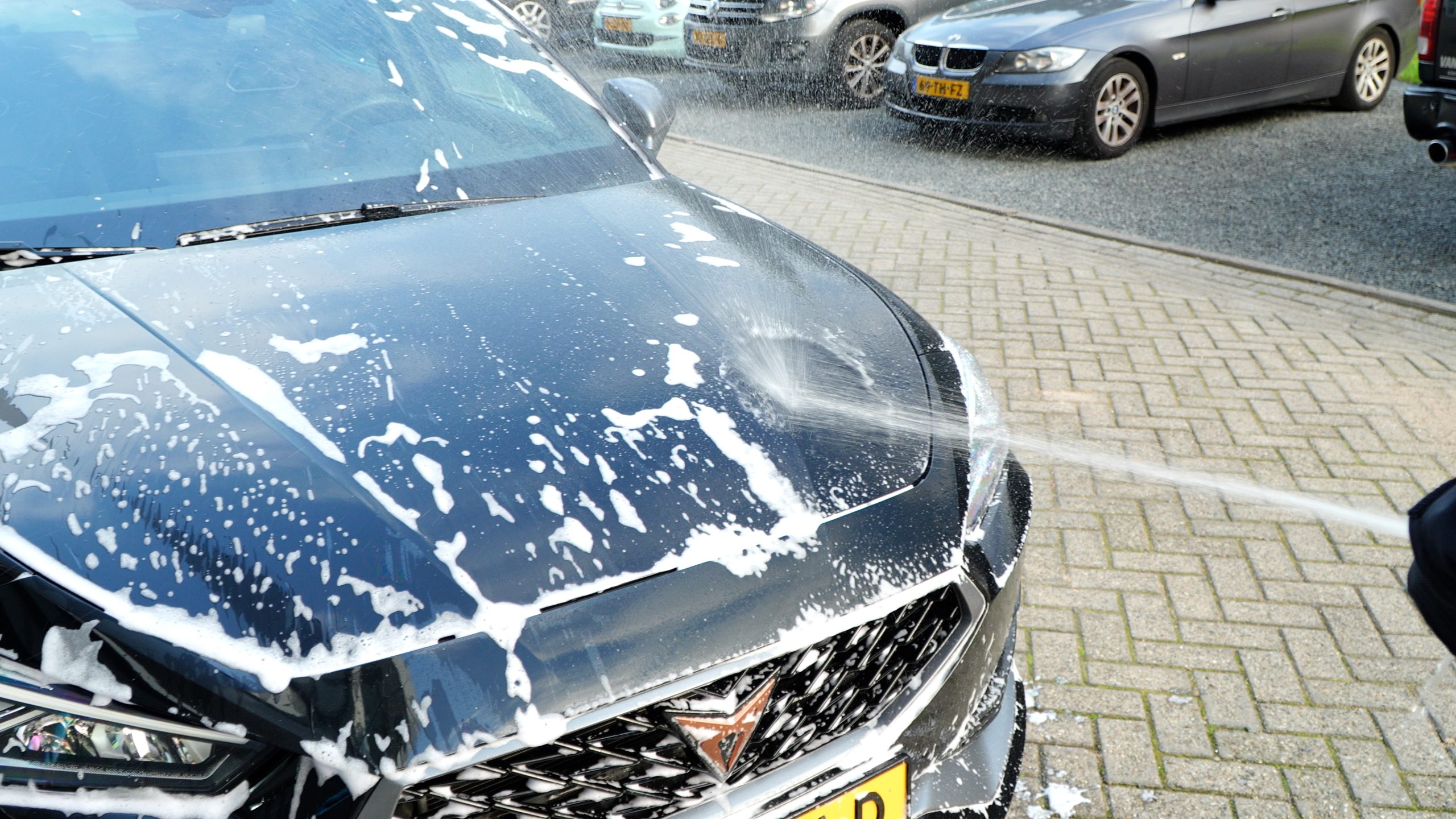 Gebruik een schone Stipt Premium Wash Extension om de auto van boven naar beneden te wassen.