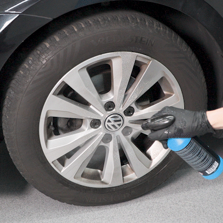 7. Wanneer je de velg van je auto hebt verwijderd kun je de binnenkant van de velg benevelen met de velgenreiniger en stap 4, 5 en 6 herhalen.